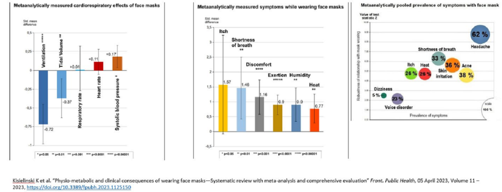 In many respects, masking mirrors the “all pain, no gain” outcome of the COVID shots in that it is precisely the most vulnerable people who are the most susceptible to harms from masking. Another study measuring a broad array of symptoms from masking found a massive statistically significant increase in side effects from long-term masking – the sort of symptoms you would not want to induce upon acutely ill patients. German researchers published a meta-analysis of 2,168 studies on adverse medical mask effects – the largest in its kind – and the findings across a diverse array of studies and surveys are appalling but predictable.