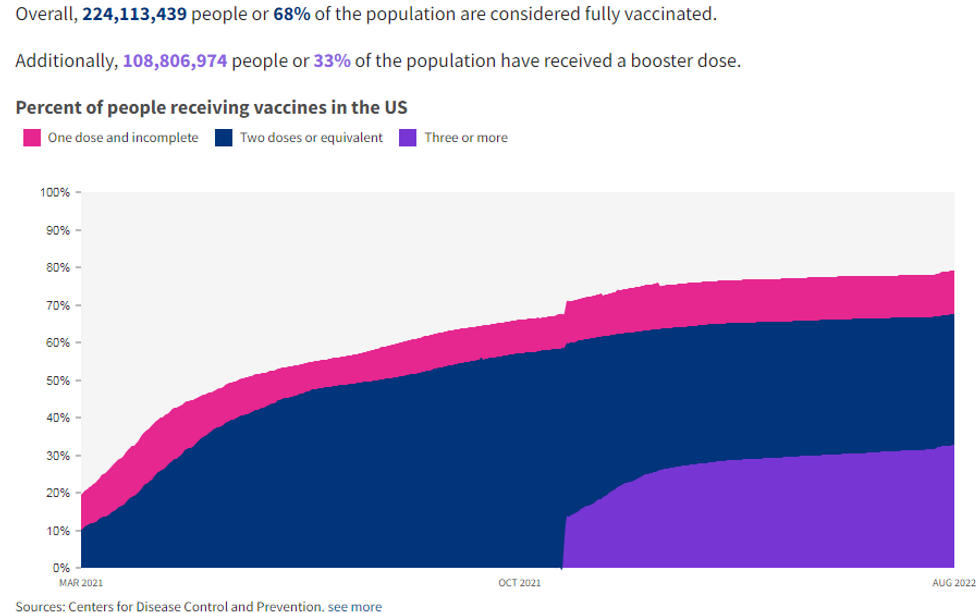 An interesting data point I’ve been tracking for nearly two years is the number of people in the U.S. who have only gotten one dose of the shot. That number has held steady at 38 million for quite a while, and the gap has never closed, even as the vaccination rate has slowed to a trickle.