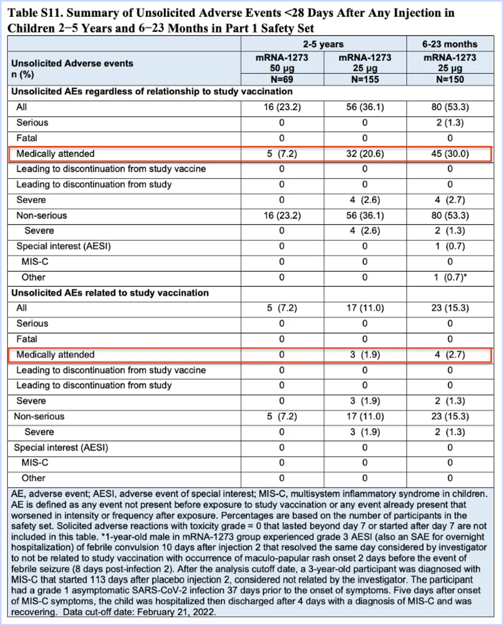 And speaking of the Moderna data on the baby shots that the company decided to publish four months after sticking it into the arms of babies who never needed such a shot, even if it did work … you probably didn’t see these results on the nightly news. But Dr. Jessica Rose draws our attention to this shocking data point on page 45 of the appendix: