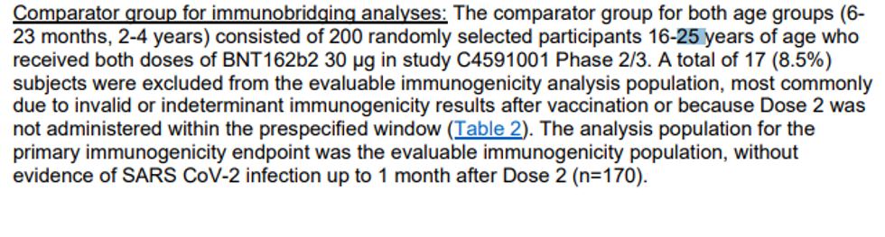 - Whereas Pfizer claims the sample size of the clinical trial for ages 6 months through 4 years consisted of 4,526 participants, researchers only used a tiny percent for the serum tests – 82 children ages 6-23 months and 143 children ages 2 to 4 years old who had no prior COVID infection. There is no understanding of how and why specifically those kids were selected as the key subgroup to determine the primary endpoint.