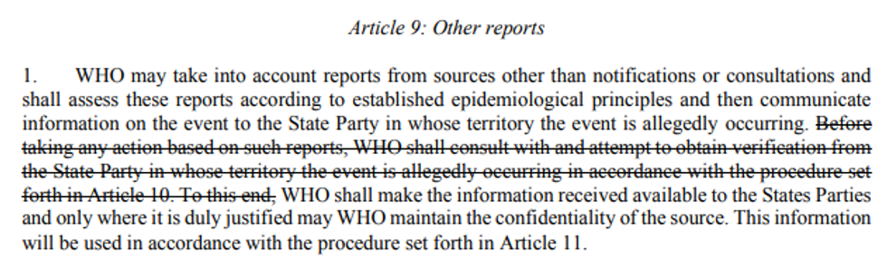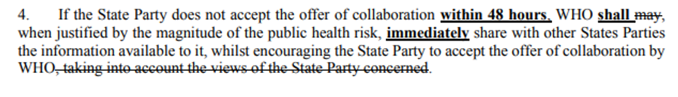 What could be the benign reason for the Biden administration erasing an existing requirement that the WHO first consult with the government of that particular country before making a determination? If there was any doubt about the motivations of these amendments and the direction in which they want to take our sovereignty, look at the next proposed change: