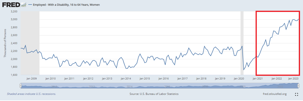 What is shocking beyond belief is that the number of women employed with a disability has jumped a third since the rollout of the vaccine!