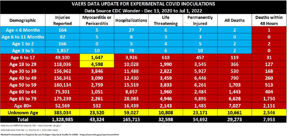 This means that our government knew from day one that the youngest people who really didn’t even need the shot even if it worked were at an elevated risk for cardiovascular damage. They plowed on anyway – and continue to do so to this very day.