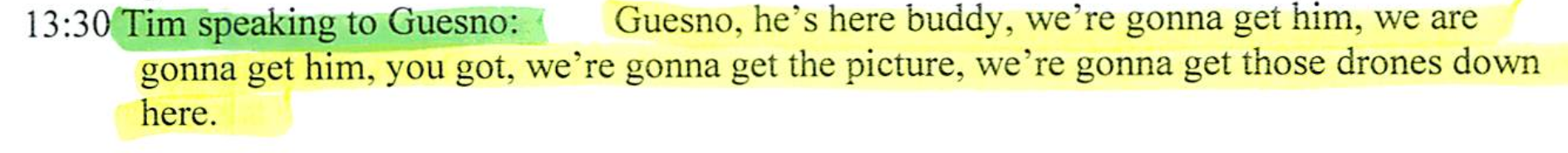 "Guesno, he's here buddy, we're gonna get him, we are gonna get him," Ballard said after a hopeful prediction from Russon, according to a transcript of a video taken during the mission. The transcript was included in Rawlings' sealed documents shared with Blaze News.
