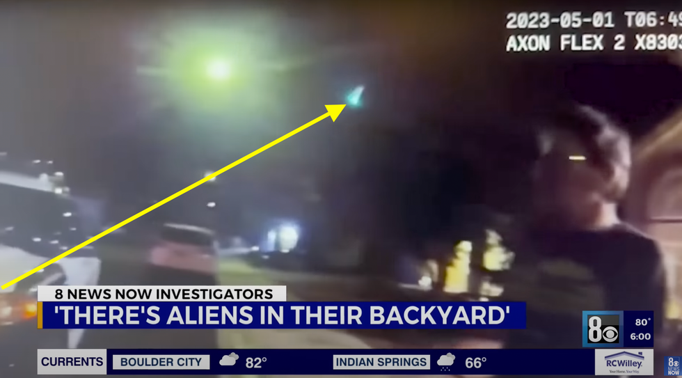 Las Vegas news station KLAS-TV published a wild investigative story Wednesday — all about a falling flash of light in the night sky captured on video and a 911 call minutes later from a man who told a dispatcher he was looking right at 10-foot-tall "aliens" with "big eyes" in his backyard and that "they are not human."