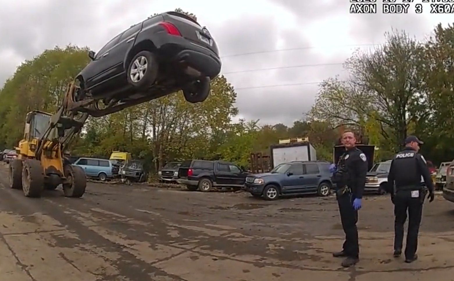 Employees at a junkyard in Akron, Ohio, spotted a criminal breaking into a vehicle last month and figured he could use a lift — though likely not the kind he had in mind.