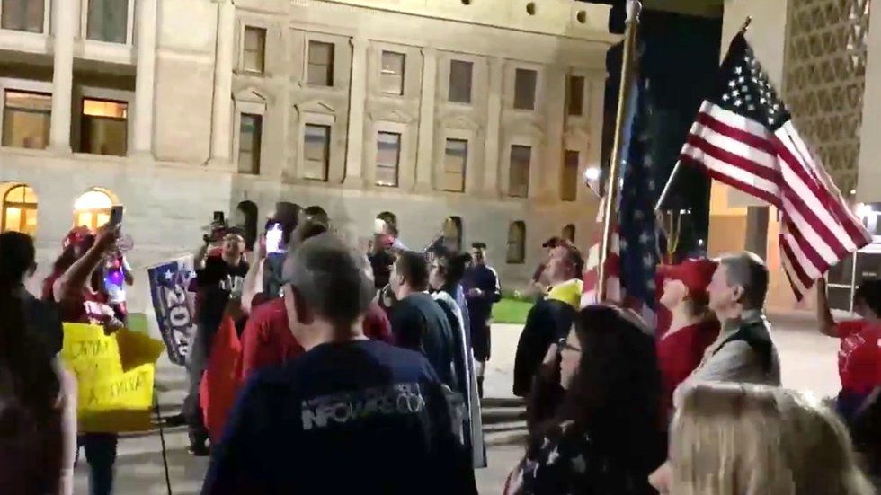 Other video showed them chanting "shame on Fox!" which could have been in reference to controversy over the Fox News channel declaring Arizona a victory for Joe Biden.