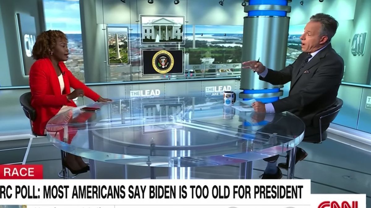CNN anchor Jake Tapper confronted White House press secretary Karine Jean-Pierre on Tuesday with dismal new polling showing that Americans believe President Joe Biden is "too old" for re-election.
