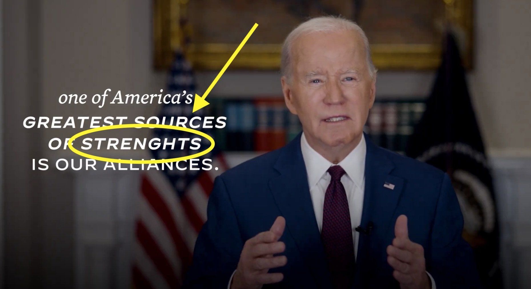 First, the video, which includes an on-screen caption of Biden's words, contains several spelling errors. The word "strength" is misspelled. Navalny's first name is misspelled. And, at one point, the caption completely omits one of Biden's words.