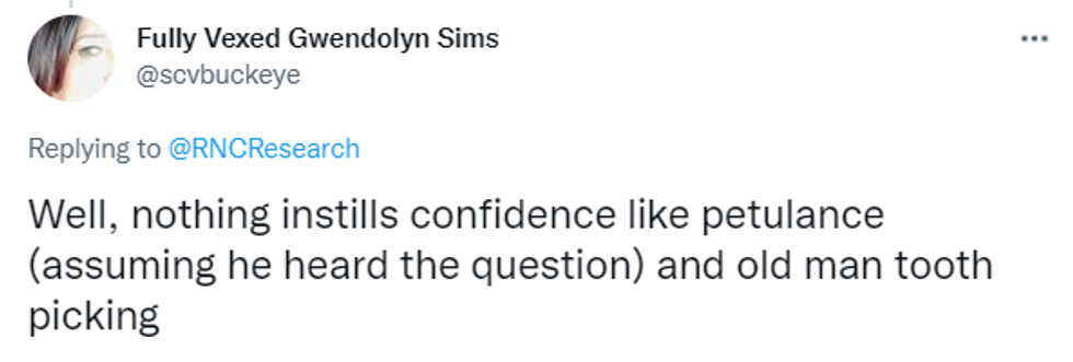 REPORTER: \u201cDo you think you may have underestimated Putin?\u201d \n\nBIDEN: *stares blankly, picks at his teeth*pic.twitter.com/tRVewZbwFc— RNC Research (@RNC Research) 1645565155
