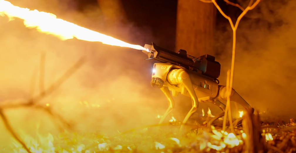We have been slowly making ourselves redundant with engineering machinery and software increasingly capable of outsmarting and outperforming us. But sure, why not? Why shouldn’t we construct a flamethrowing robot dog capable of sprinting at literal breakneck speeds within the blink of an eye? Don’t let its mechanical death eyes frighten you. Or better yet, scoot back far enough that you can’t see them — the flame has a 30-foot max firing range anyway.