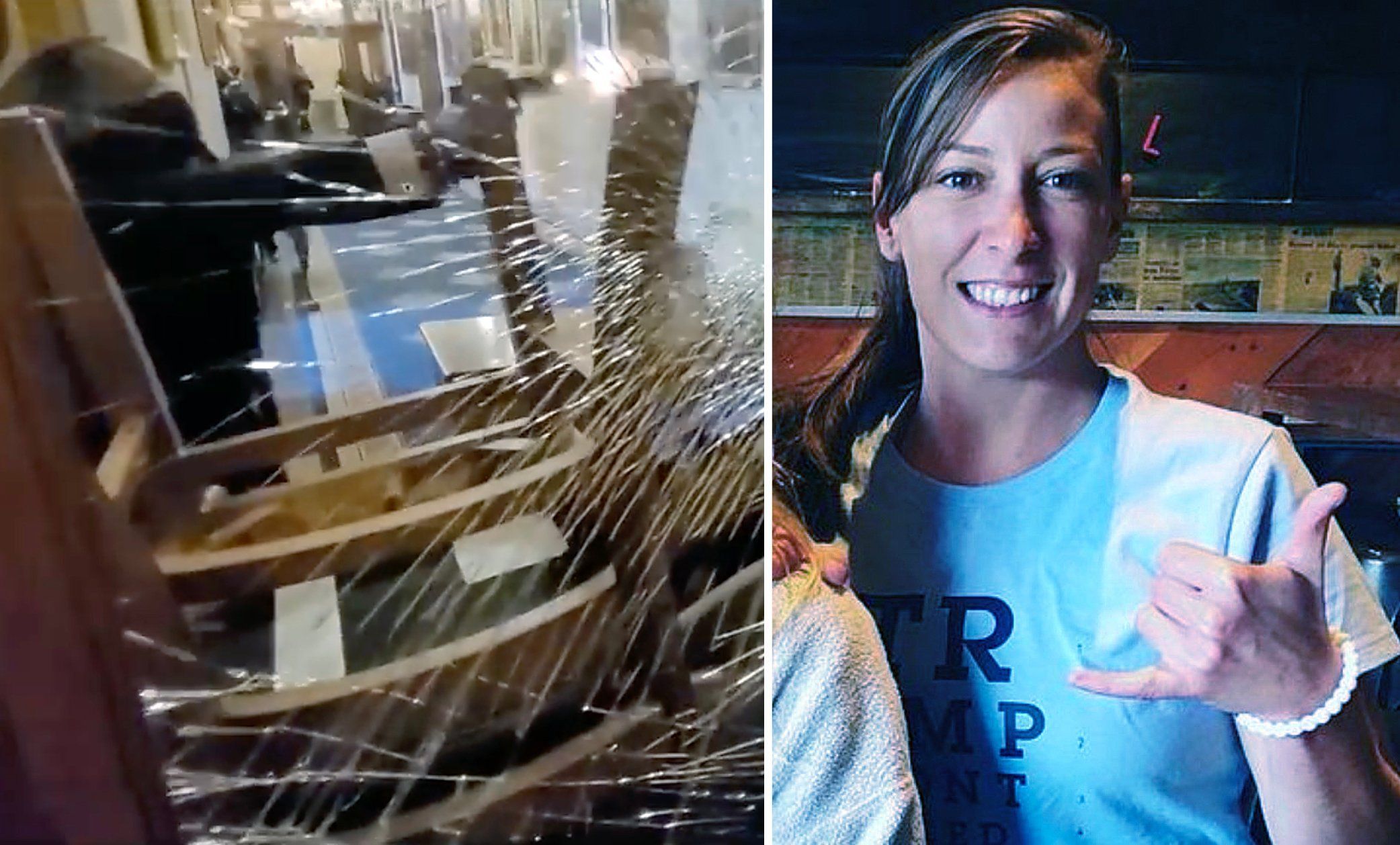 Ashli Babbitt punches rioter Zachary Jordan Alam in the nose after he smashed out several windows in the entrance to the Speaker's Lobby at the U.S. Capitol on Jan. 6, 2021. Babbitt was fatally shot seconds later. Blaze News graphic from Sam Montoya photograph. Used with permission.