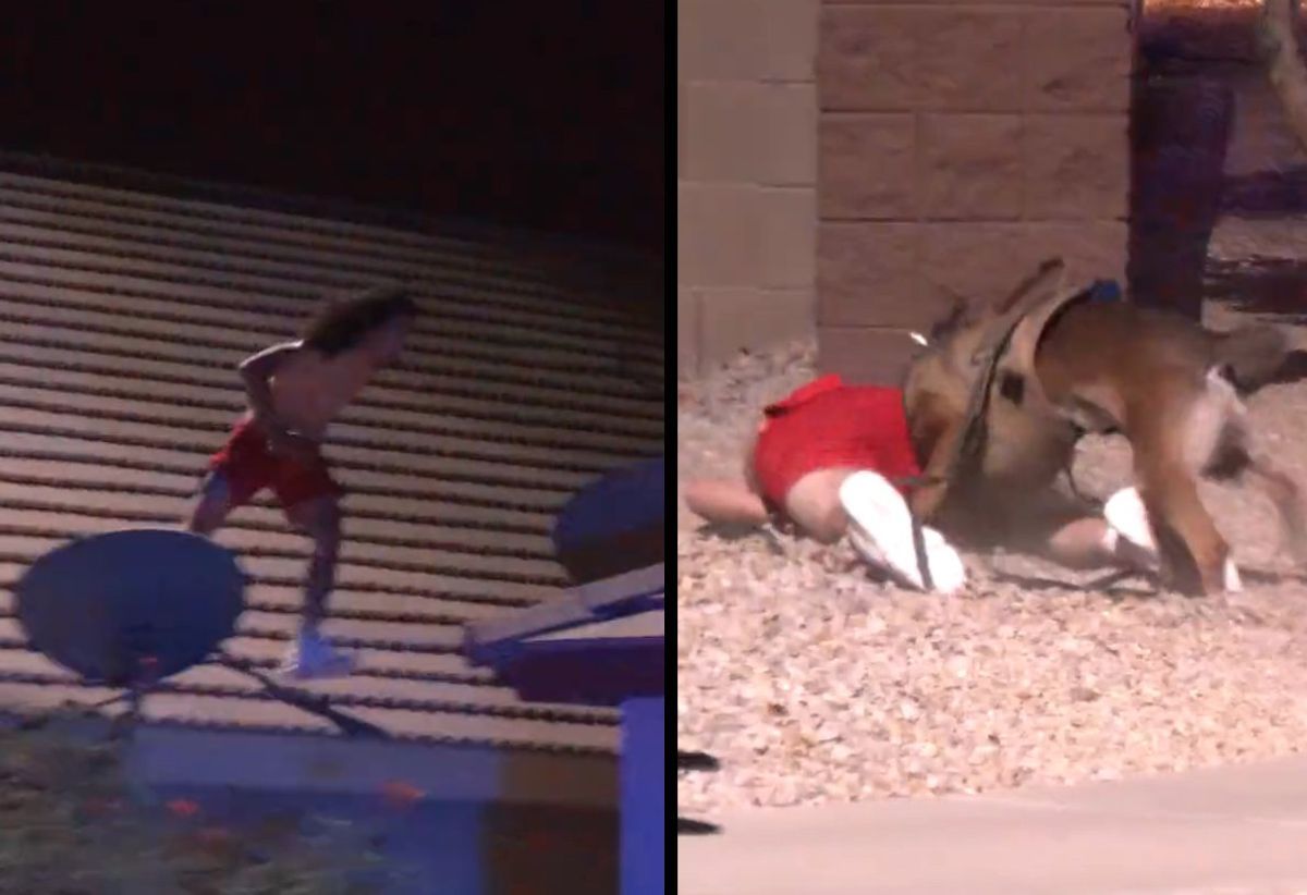 Suspect tries to flee Phoenix police by leaping rooftop to rooftop. When that fails, he tries to outrun a K-9 unit.