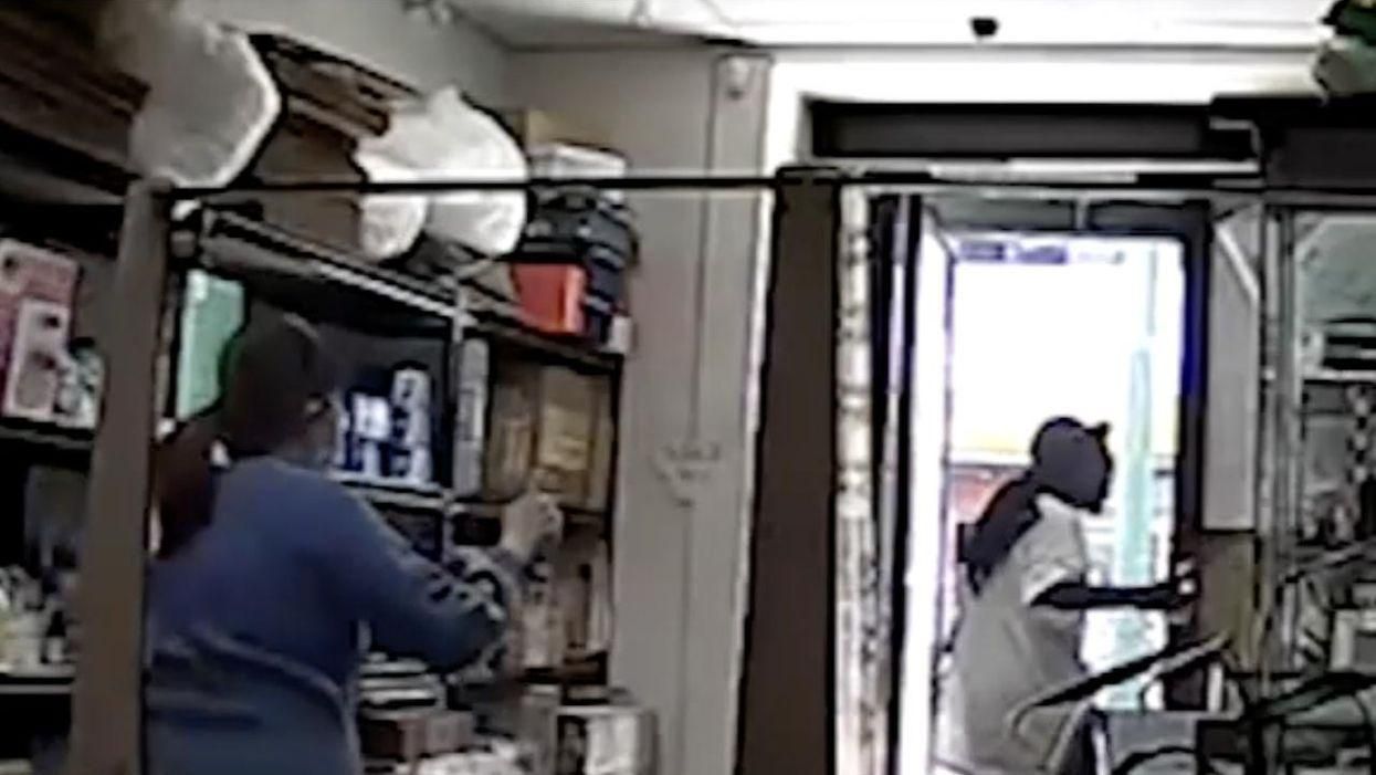 With no security guard on duty, KGO said Diane's 76-year-old husband is seen on the clip coming out from the back of the store armed with a gun of his own, which apparently convinced the crooks to leave.