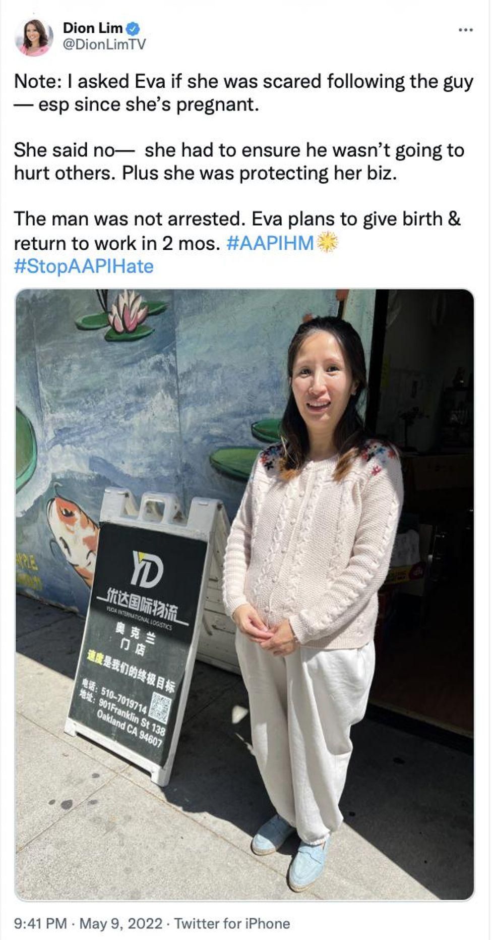 Still she noted to the station that she'd like to "see more police officers" in Chinatown, "especially officers that speak the language."