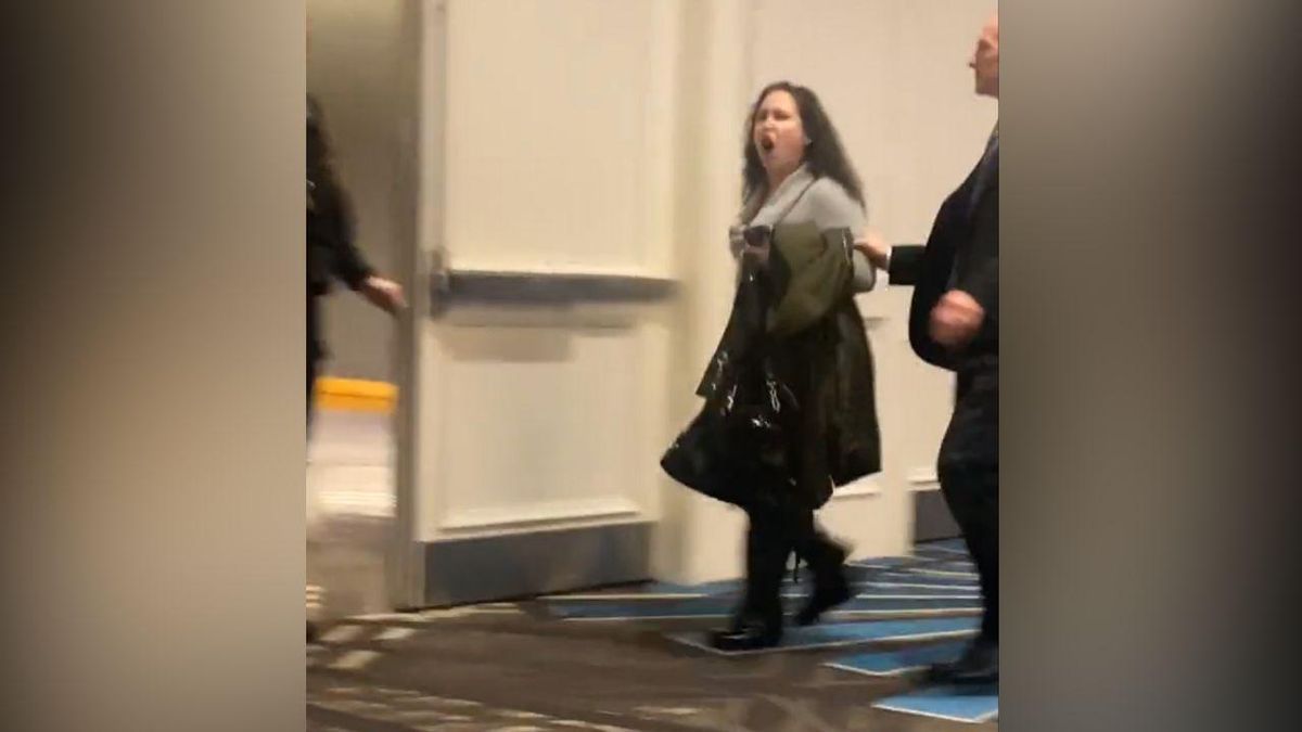 According to reporter Carolina Lumetta, Durig was attempting to address the guests about heightened security risks from earlier in the year when her speech was repeatedly interrupted by multiple protesters, one at a time.