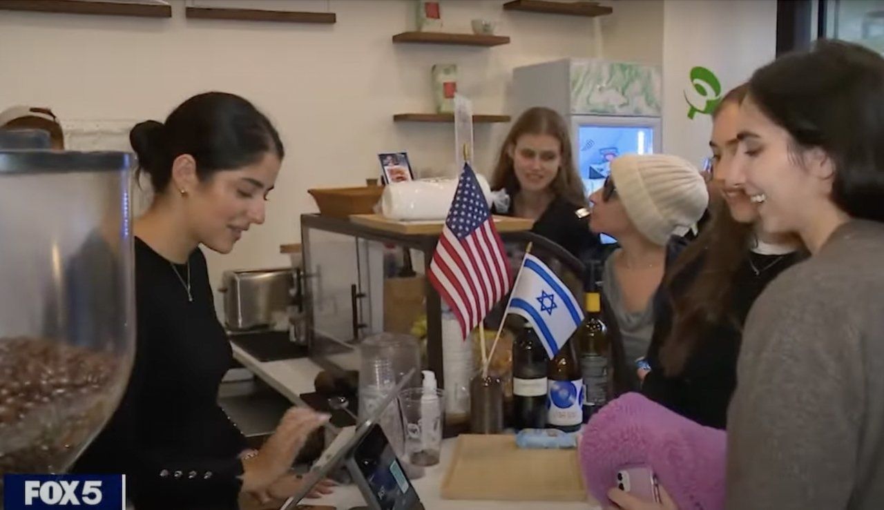 Surveillance video inside the cafe shows employee Nick Grant behind the counter while the male walks in and immediately targets a seated customer by a window.