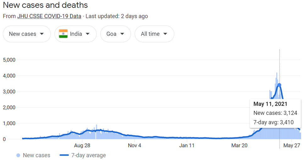 The state of Goa, which is also in the south, began offering ivermectin to all adults on May 11. The 87% drop in four weeks is remarkable.