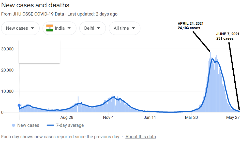 A similar dynamic played out in the state of Uttar Pradesh, which is now 98% off its peak of COVID cases in late April. India's overall reduction since its peak five weeks ago was 76%, more in line with what we saw in the U.S. and Europe, once the peak wave passed and a modicum of herd immunity kicked in.