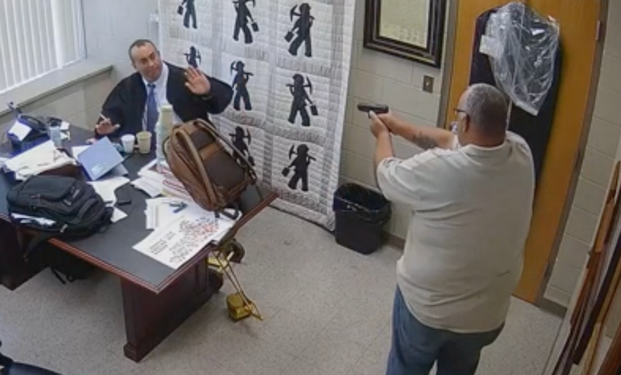Surveillance video of Kentucky judge getting fatally shot in his chambers is shown during accused sheriff's hearing