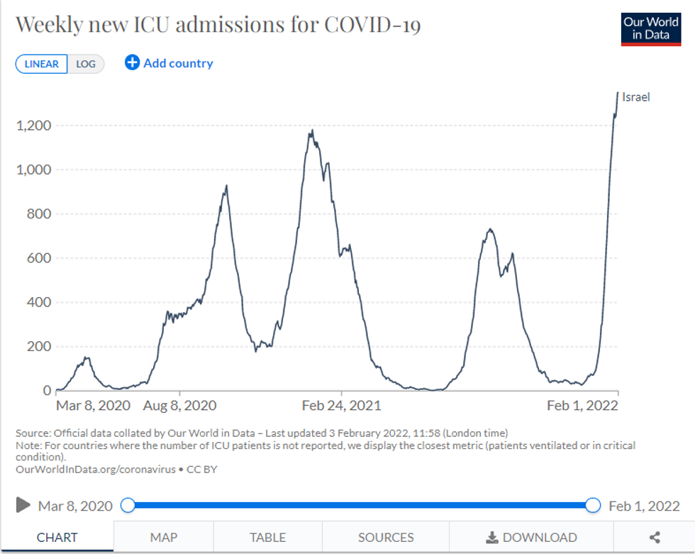 In other words, precisely after most of Israel’s population got the third shot and even many of the seniors got fourth shots is when they experienced their worst crisis ever – not just of mild infections but serious cases.