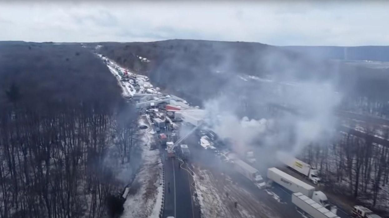 Heart-stopping video shows deadly fiery 50-car pileup unfolding on snowy Pennsylvania highway