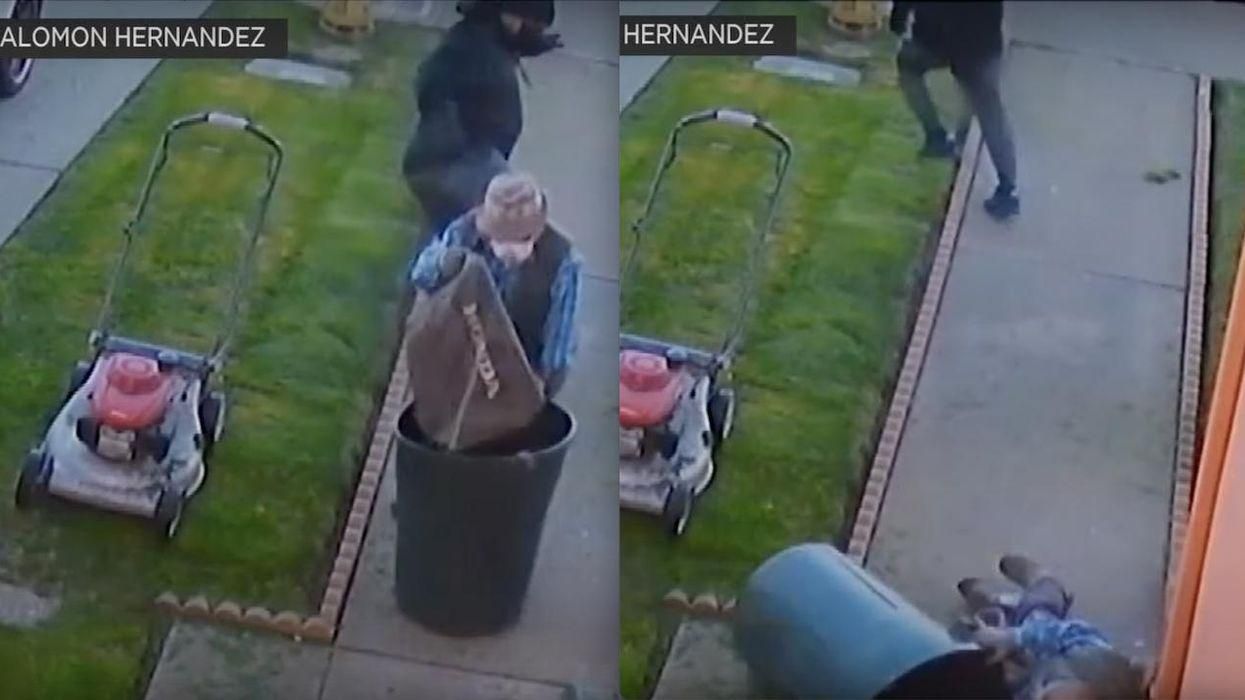 Video shows the victim struggling with the suspect next to a pickup truck in the 1300 block of Skyline Drive around 4:30 p.m. Thursday, KNTV reported. The assailant hits the victim multiple times with a handgun as he orders the elderly man to give up his watch.