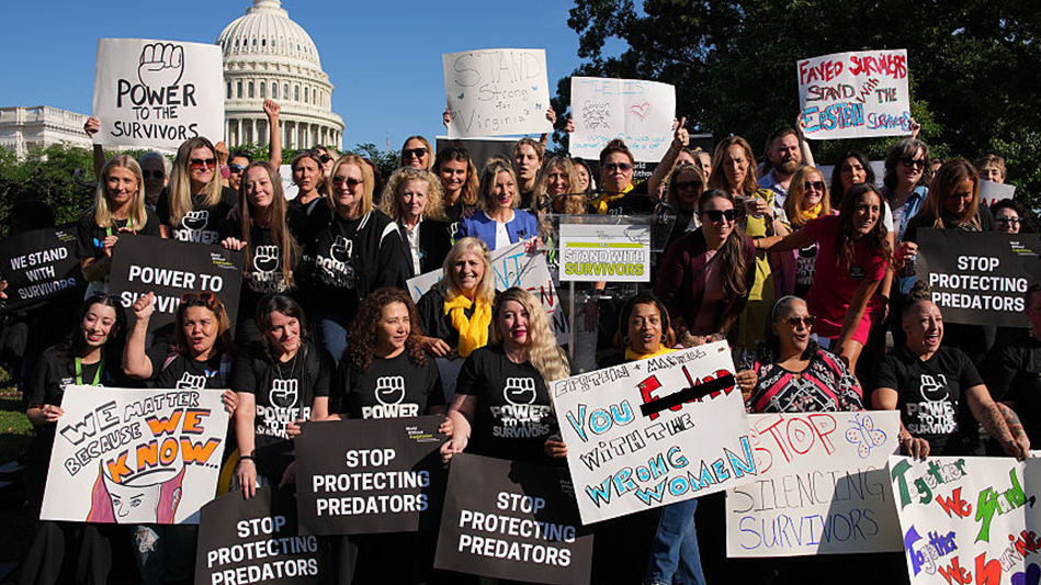 Lisa Phillips speaks during a rally in support of the victims of disgraced financier and sex trafficker Jeffrey Epstein. Photo by Andrew Harnik/Getty Images