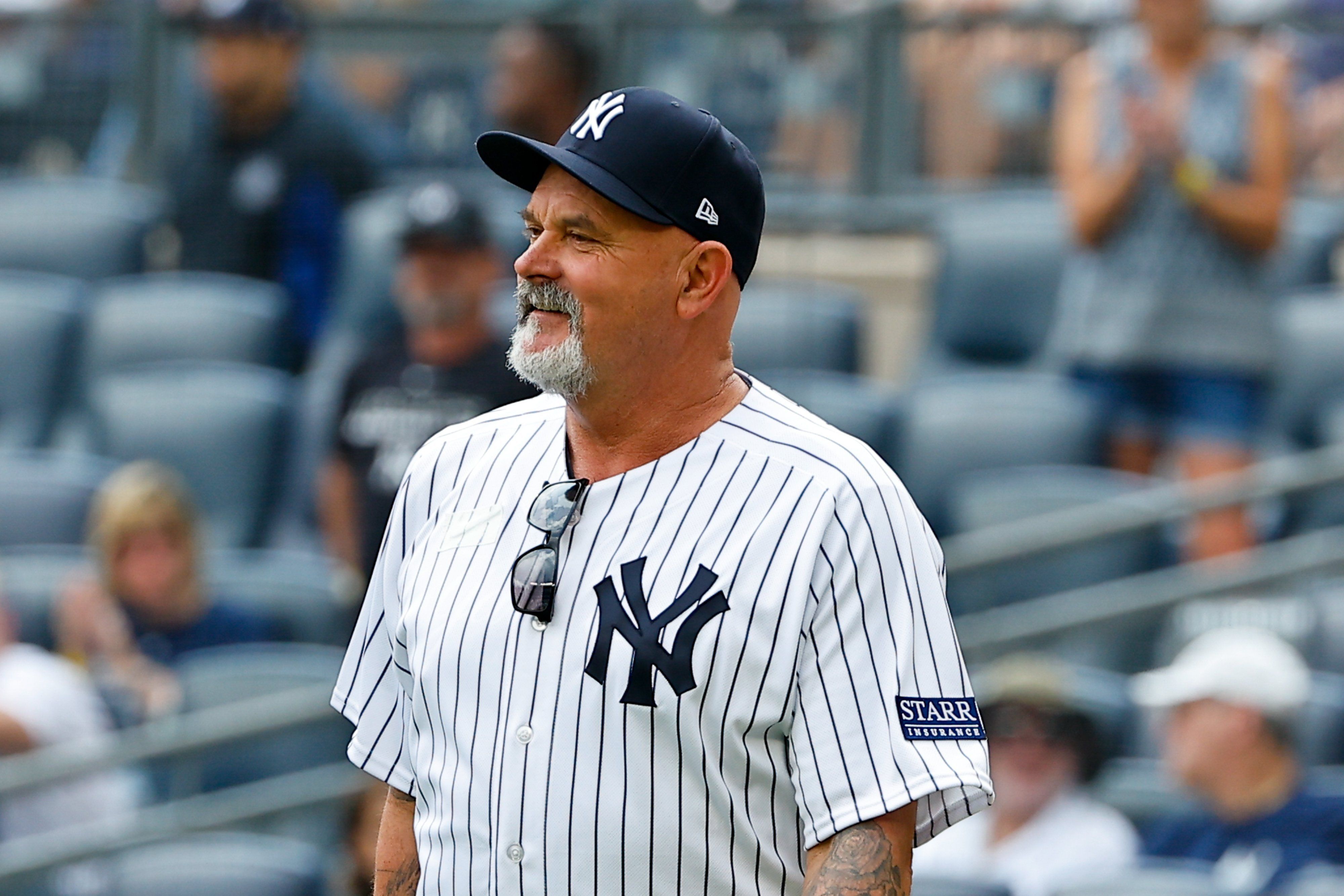 David Wells, at Yankees Old Timers' Day, has a piece of tape covering the Nike logo on his Yankees uniform. Asked why, he said: "I hate Nike!" and if he was playing today, he'd cut the logo out and just have a hole in his jersey. Wells convinced some other players to do it too.— Deesha (@Deesha) 1694276177