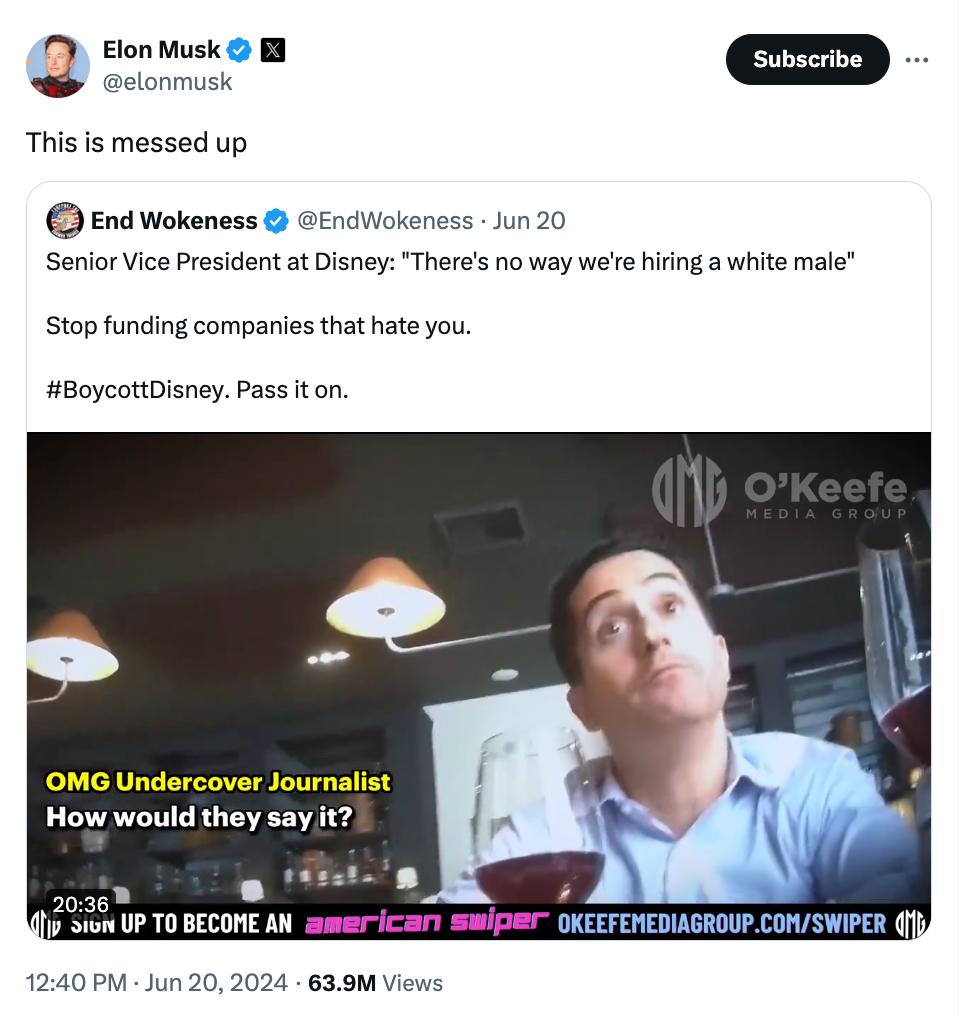 Elon Musk Responds to Disney Caught Discriminating Against White Menyoutu.be