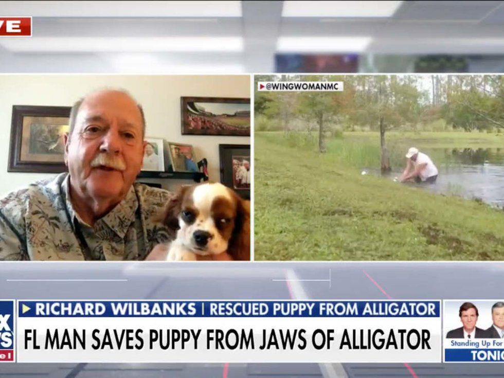 Retiree Richard Wilbanks, 74, and his Cavalier King Charles Spaniel, Gunner, appeared on Fox News Monday for an interview about the dramatic rescue, which was captured on video and went viral over the weekend.
