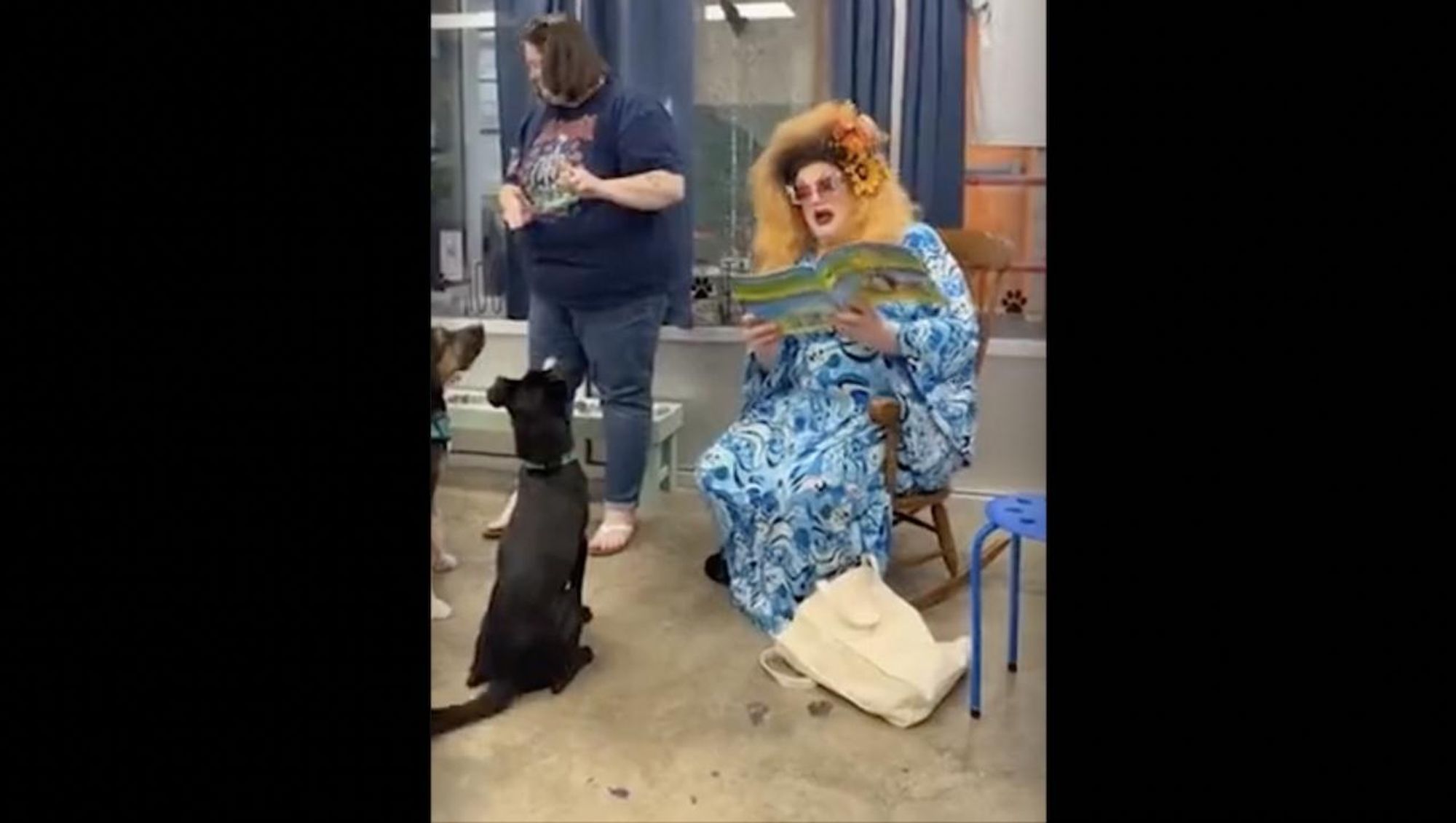 Drag queen who's a middle school teacher adds sexual innuendo during Drag Queen Story Time at dog shelter: 'Everybody loves a big bone'