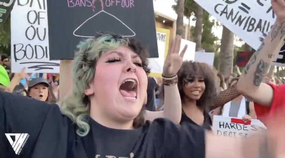 Hernandez captured a clip of a man dressed in a pink "Bans Off Our Bodies" shirt berating a female pro-life demonstrator as a "closet homosexual" — hollering just inches from her ear and appearing to bump into her at least once.