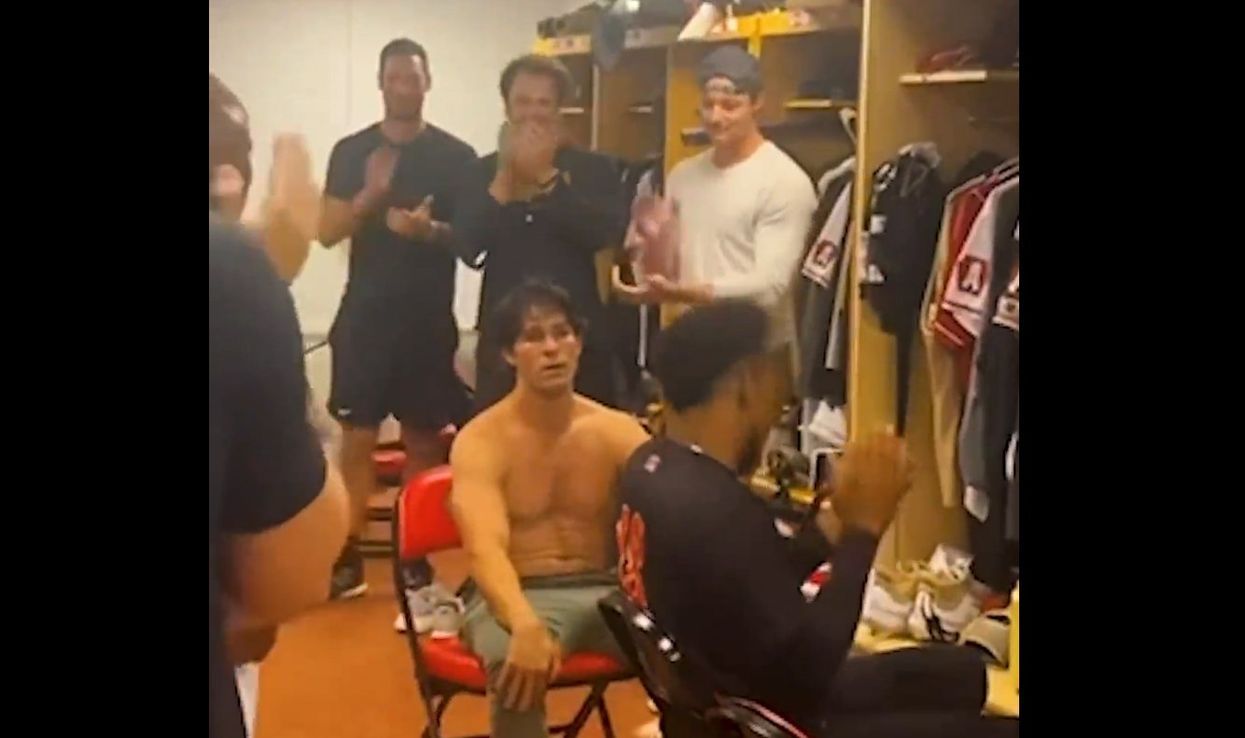 Maggi appeared dumbstruck until Crabbe confirmed the news with a hug and a handshake, at which point he leapt up and said, "Let's f****** go!"
