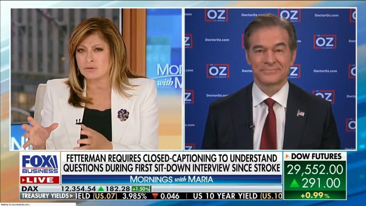 Oz, a celebrity doctor and television host, was asked about the computer device Fetterman used by Fox Business host Maria Bartiromo on Thursday.