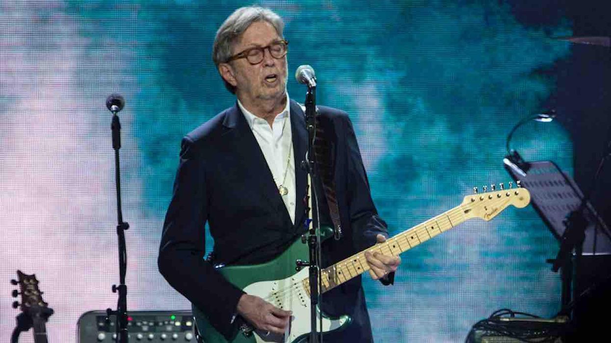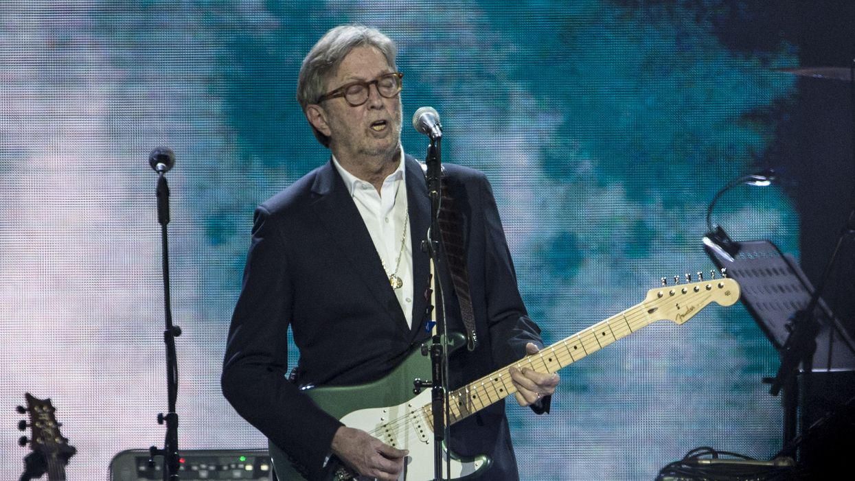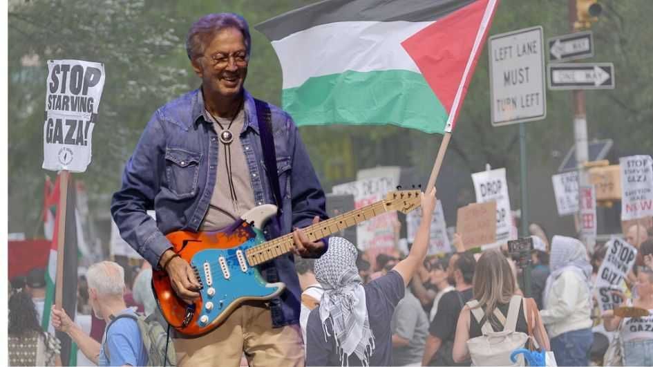 After a few thank-yous, Peled wasted no time before introducing the night's star attraction. Clapton, who much earlier in his career urged his countrymen to "keep Britain white" by expelling the "w*gs" and "c**ns" turning it into a "black colony," now aimed his guitar — a Fender Stratocaster painted to look like Palestine's flag — at colonizers of a lighter hue.