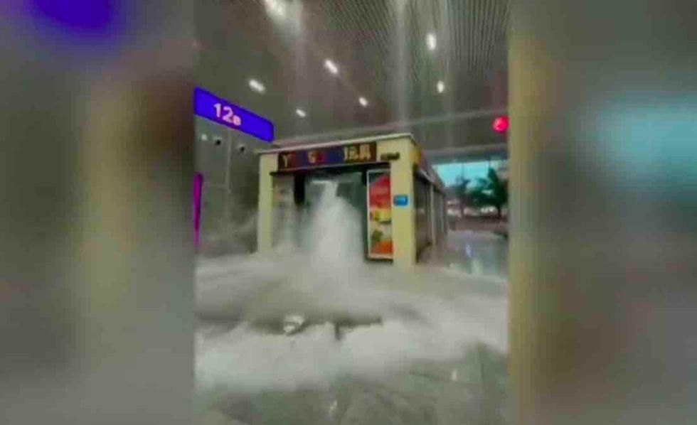 The clip also showed floodwaters bursting through an entryway and onto commuter platforms.