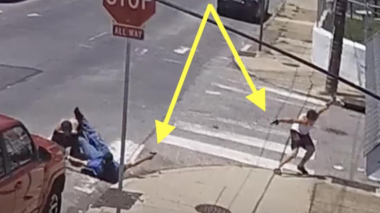 As he is being stabbed, the would-be thief yells, "I'm dead! I'm dead!"