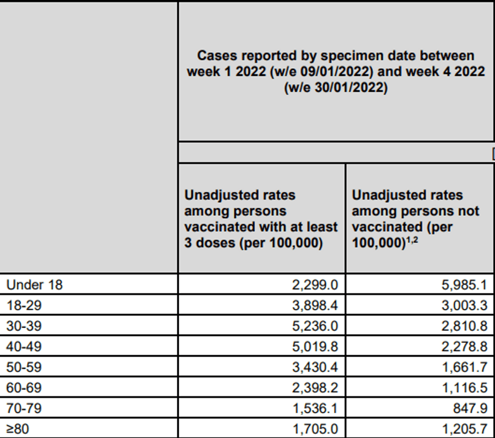 When it comes to case rates, the U.K. is now reporting that in some age cohorts, the triple-jabbed are more than four times as likely to test positive, which would net an efficacy rate of -300%!