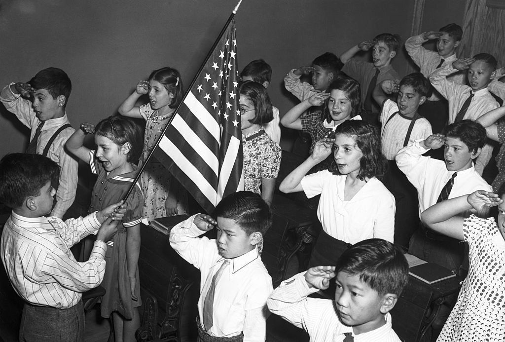 Circa 1905: Immigrants waiting in line to pass through customs at Ellis Island, New York City. Photo by Hulton Archive/Getty Images