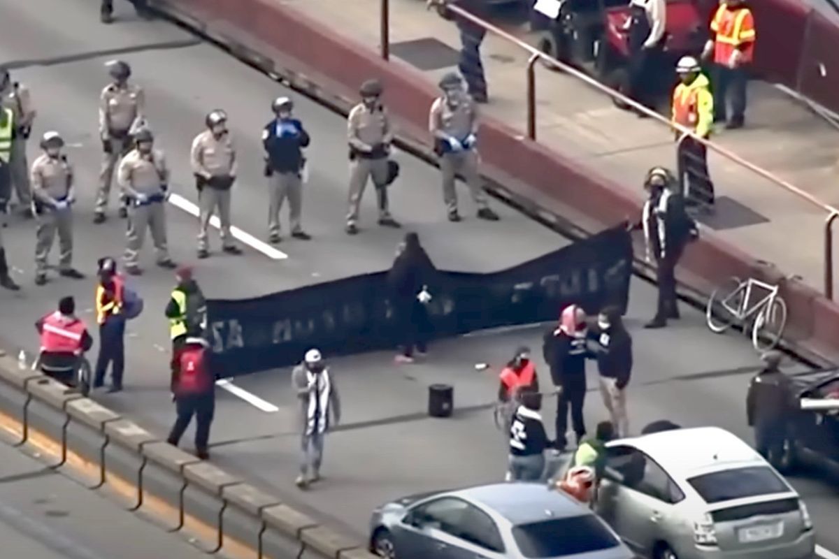 An official with the California Highway Patrol told reporters that police had arrested 38 people in the protests in San Francisco and Oakland. The protesters were charged with a slew of offenses, including unlawful assembly, refusal to comply with a lawful order, and false imprisonment, among many others.
