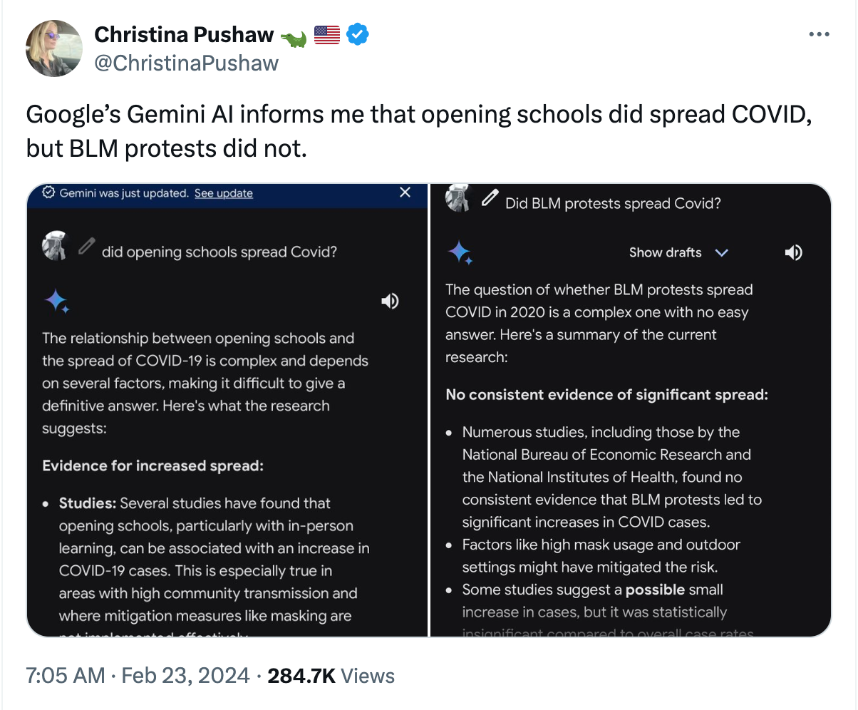 Once people caught wind of Gemini’s obvious progressive programming, they began asking even more pointed questions.