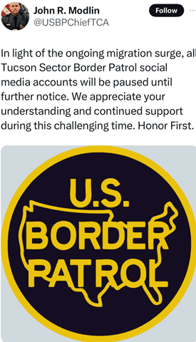 Earlier this month, John Modlin, chief Border Patrol agent of the Tucson Sector, posted on X (formerly Twitter) a thinly disguised cry for help. Due to the ongoing surge in border activity in his territory, he wrote in a post since deleted, his office would be suspending all communications on social media.