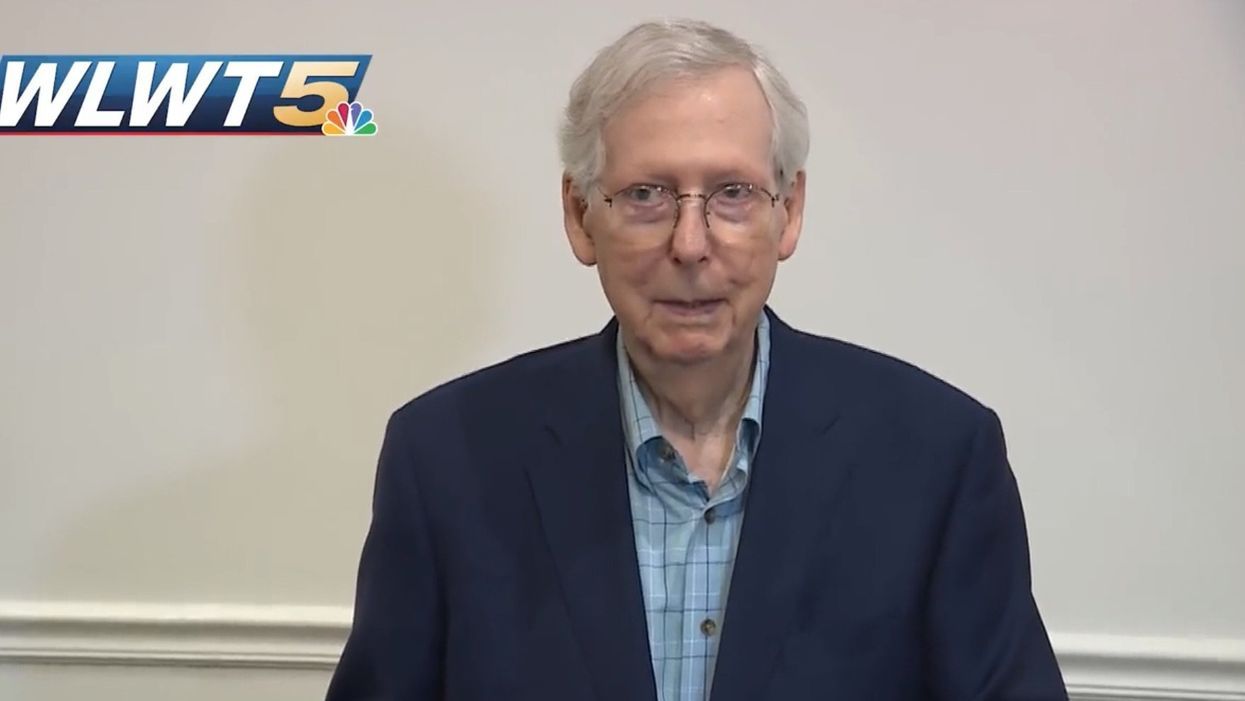 McConnell, however, did not answer despite a nearby aide loudly repeating the question. The aide told reporters, "I'm sorry, you all. We're gonna need a minute," as a person who appeared to be a member of McConnell's security detail approached the senator and mumbled something into a microphone.
