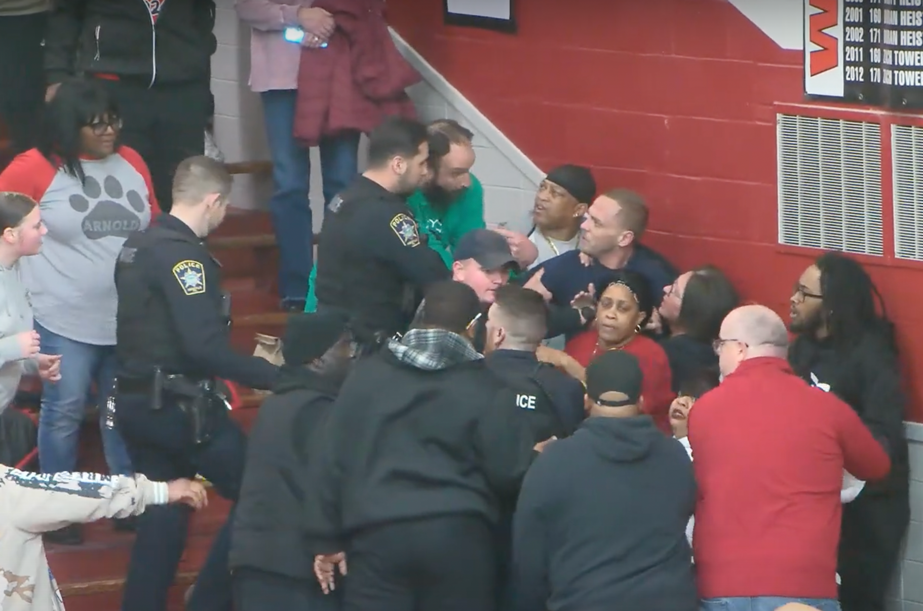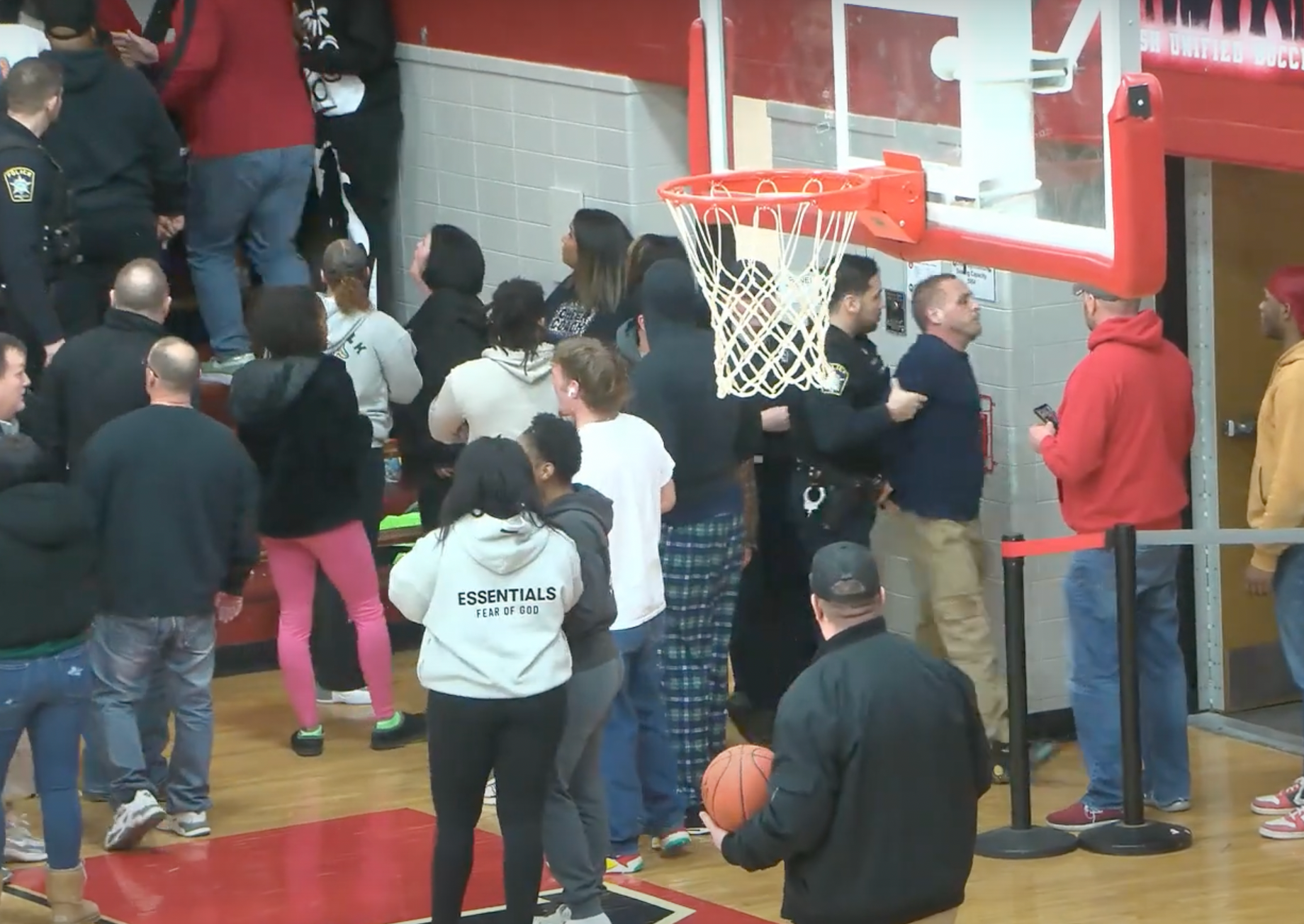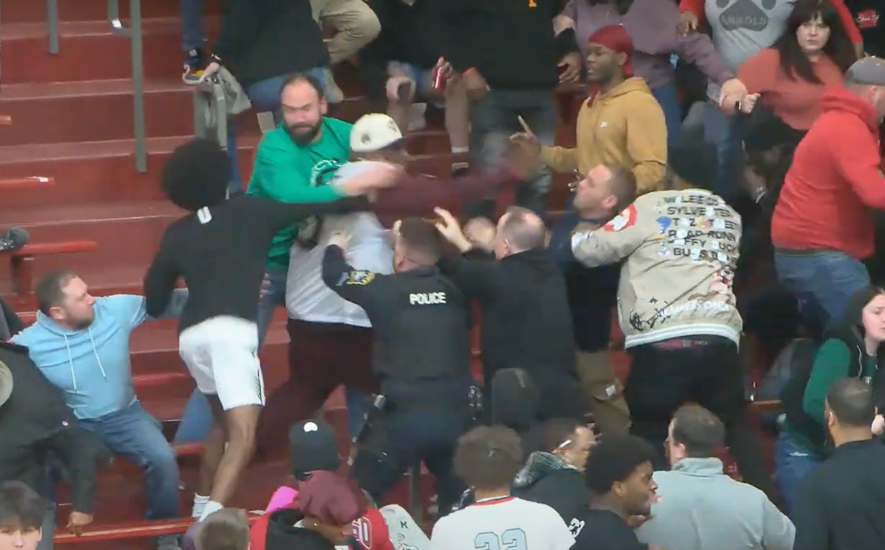 Wild brawl caught on video at HS basketball playoff game; 7 arrested, including 3 minors and 1 player