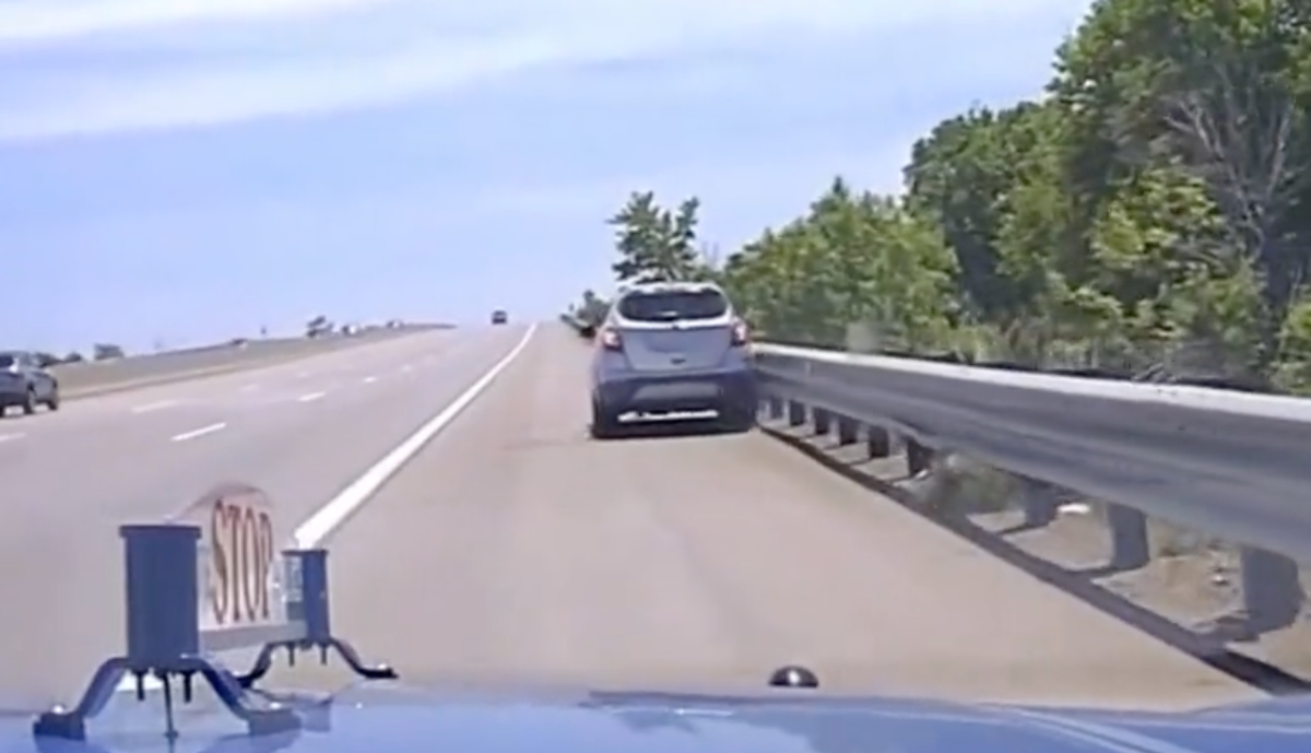 The silent, 31-second video provided by MSP's Third District shows the car swerving from lane to lane with its hazard lights flashing. The video was captured on the troopers' dash cam.