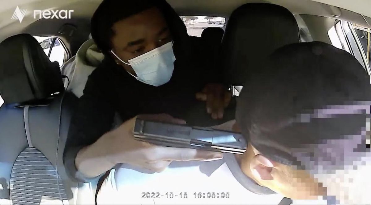 Video captured inside a vehicle in Houston shows a carjacker pressing a gun against an Uber driver's head and ordering him to "get out before I kill you!"