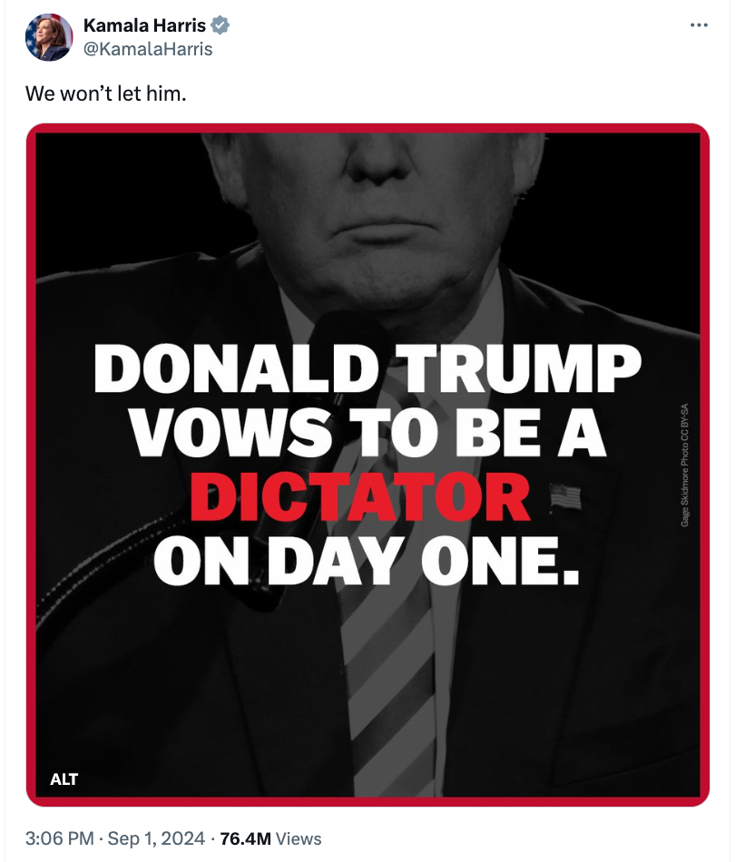 She points to a recent tweet from none other than Kamala Harris as one of countless examples of the inflammatory rhetoric employed by the left: