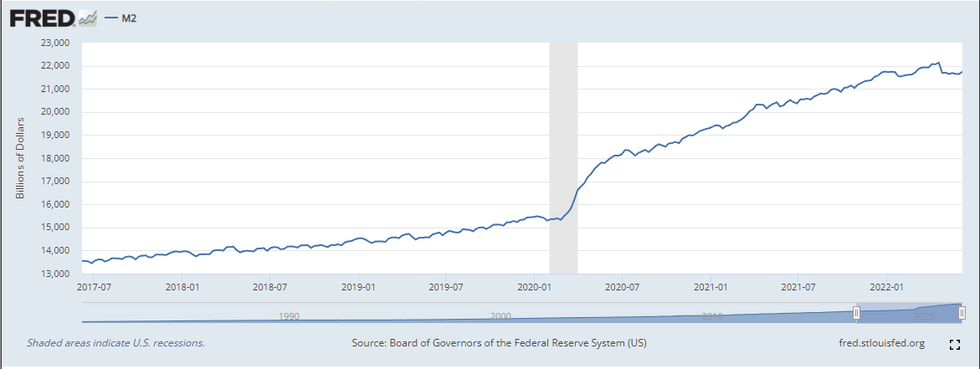 Because of the terrible COVID policies Republicans still refuse to acknowledge, the federal reserve went on such a bond buying spree that it literally increased the money supply by 40% and did this all while the same policies were shrinking output.