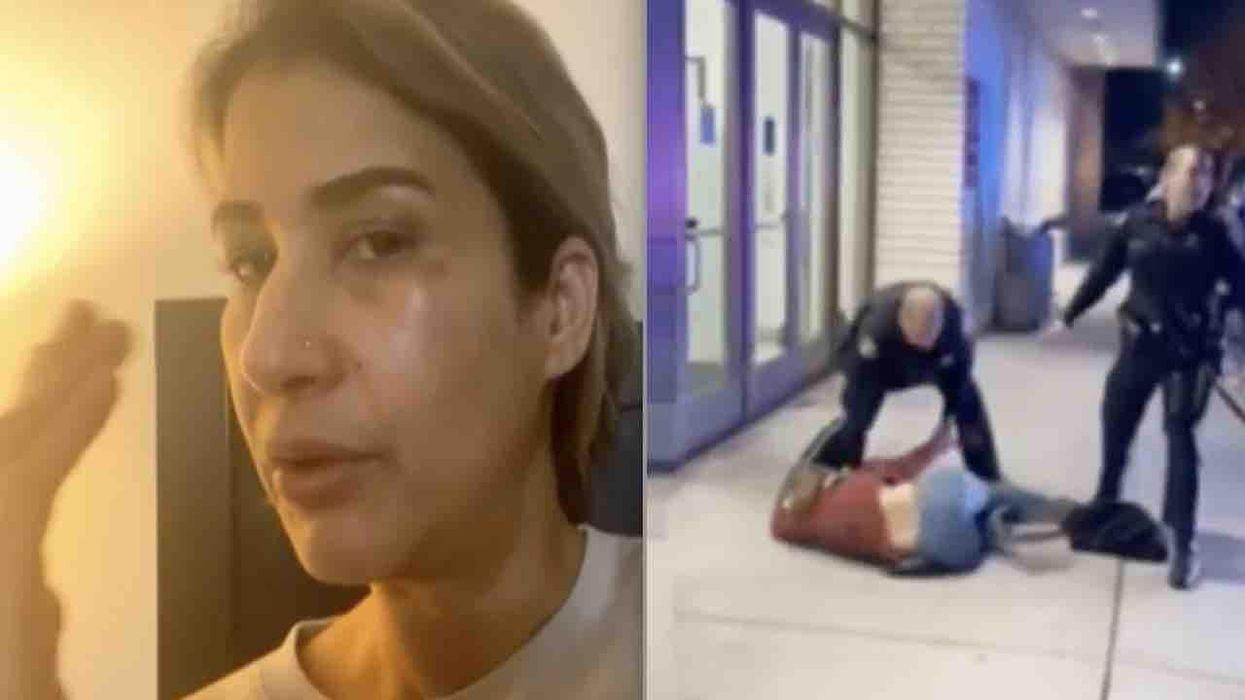 “He slammed me really hard to the ground," Hamed told KNTV of the officer who went after her while she showed her bruised face to a video camera — along with her scraped elbow that she said "really hurts badly, too."